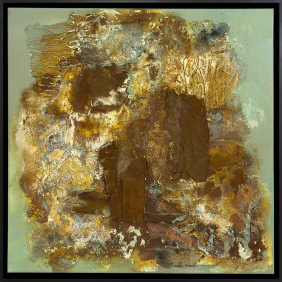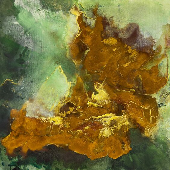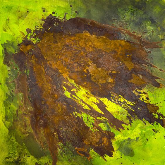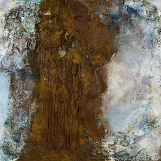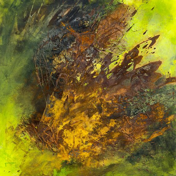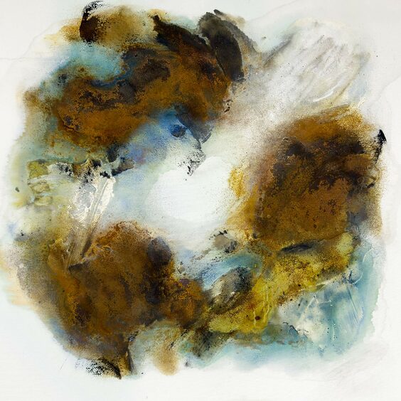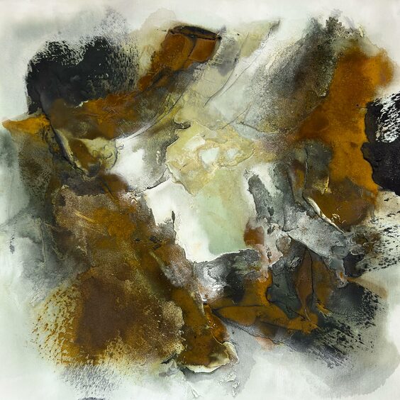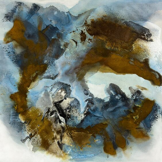 Mona Kiefer erschafft abstrakte Arbeiten, die zwischen fließender Gestik und strukturierter Materialität oszillieren. In ihren quadratischen Formaten verbinden sich Acryl, Kreide, Papier- und Gipsapplikationen mit Rostfarben zu vielschichtigen Kompositionen, die Bewegung, Tiefe und Atmosphäre vereinen.